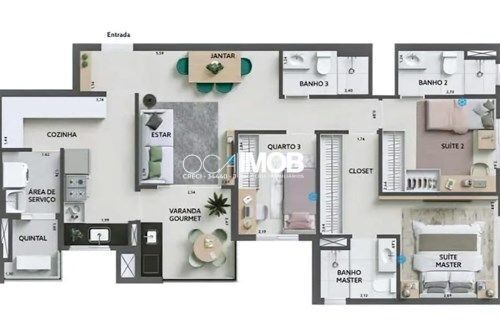 3 Dormitórios, sendo 2 Suítes3 Banheiros2 VagasGaragem Coberta1 Cozinha1 Sala de estar1 Área de serviço