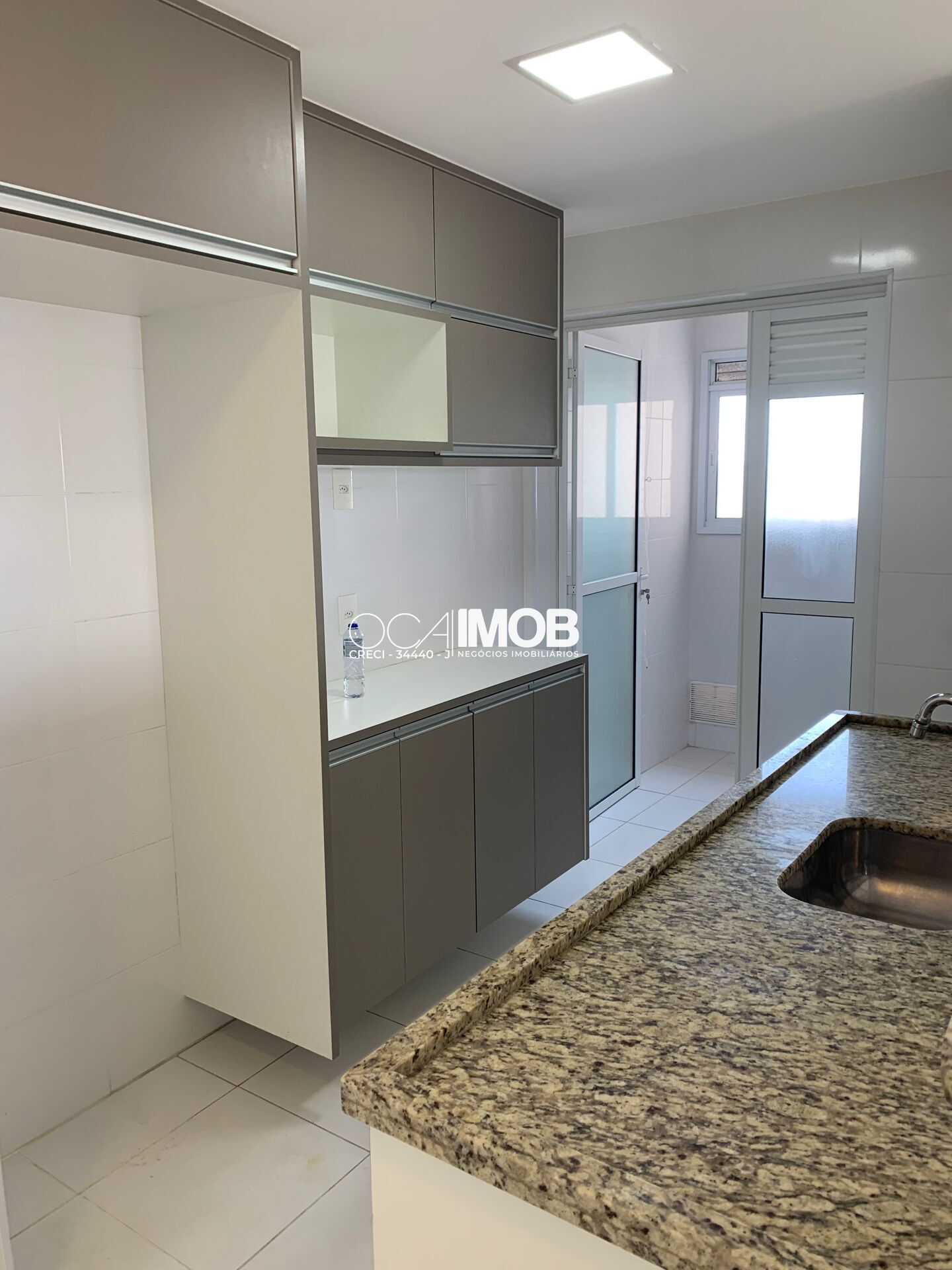 O imóvel possui área de serviço, 2 banheiros completos com gabinete e box e 2 vagas de garagem cobertas e fixas.